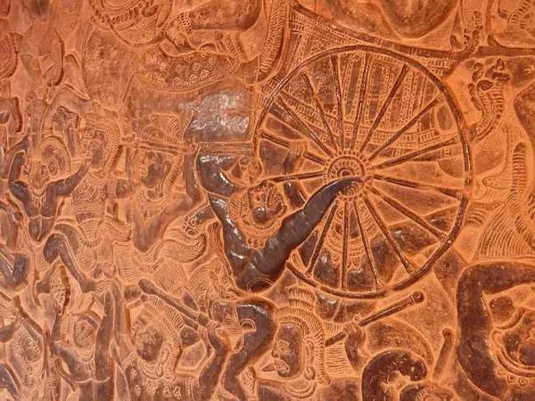 另一个在吴哥窟频频出现的“常客”就是印度史诗《罗摩衍那》中的主角罗摩(Rama)以及他的好帮手神猴哈努曼(Hanuman)。吴哥寺西廊北面呈现的就是《罗摩衍那》的故事高潮“楞伽城大战”——罗摩在哈努曼的帮助下架起一座桥,跨越了如今横在印度和斯里兰卡之间的水域,并且在激烈的战役中击败了魔王罗婆那救出自己的妻子悉妲(Sita)。浮雕上的画面异彩纷呈,神猴们的神态、动作各异,非常值得细看。